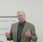 Berton Lee Lamb discussing natural resource negotiation at Yamaguchi University, Japan.